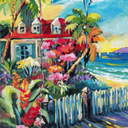 Les paysages tropicaux, la végétation, les rivages et les scènes de vie insulaire deviennent des prétextes à une exploration sensible de l’émotion. Chaque toile propose une expérience visuelle intense, où la beauté fragile des Caraïbes se transforme en voyage intérieur.